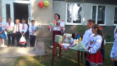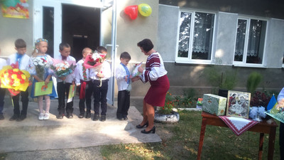 2-4 класів привітали першачків з початком навчання . Наші наймолодші школярі отримали подарунки від Я.Дубневича, депутата Верховної Ради України, та Т.Граната , депутата Мостиської міської ради. Батьки і педагогічний колектив вдячні меценатам за щедрі даврунки.